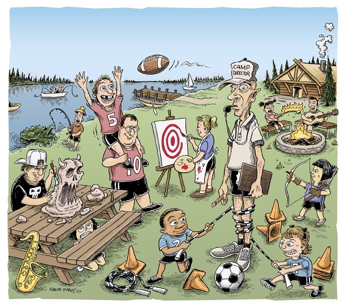 Guess what? We have all passed our first aid merit badges. When Dave dove in the lake and cut his arm, we got to see how a tourniquet works. Wade and I threw up, but Counselor Clark said it probably was just food poisoning from the leftover chicken. He said they got sick that way with the food they ate in prison. I’m so glad he got out and became our Counselor. He said he sure figured out how to get things done better while he was doing his time. By the way, what is a pyromaniac? I have to go now. We are going to town to mail our letters and buy bullets. Don’t worry about anything. We are fine.